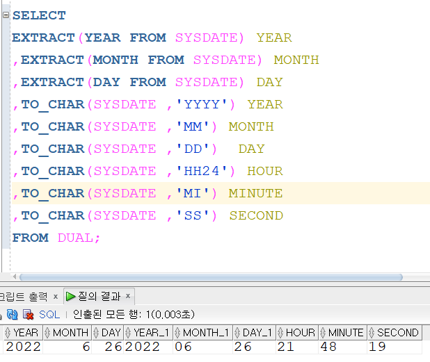 유용한 함수 날짜 함수 /SYSDATE, TO_CHAR(),EXTRACT() ,TO_NUMBER() / SQL-ORACLE 본문