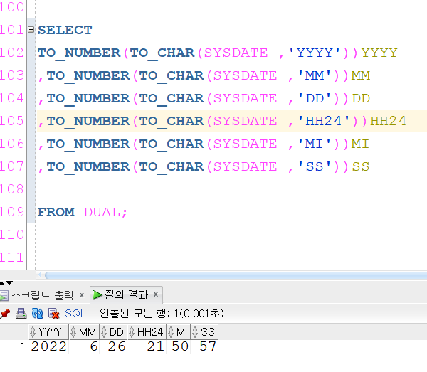 TO_NUMBER() : 숫자로 추출