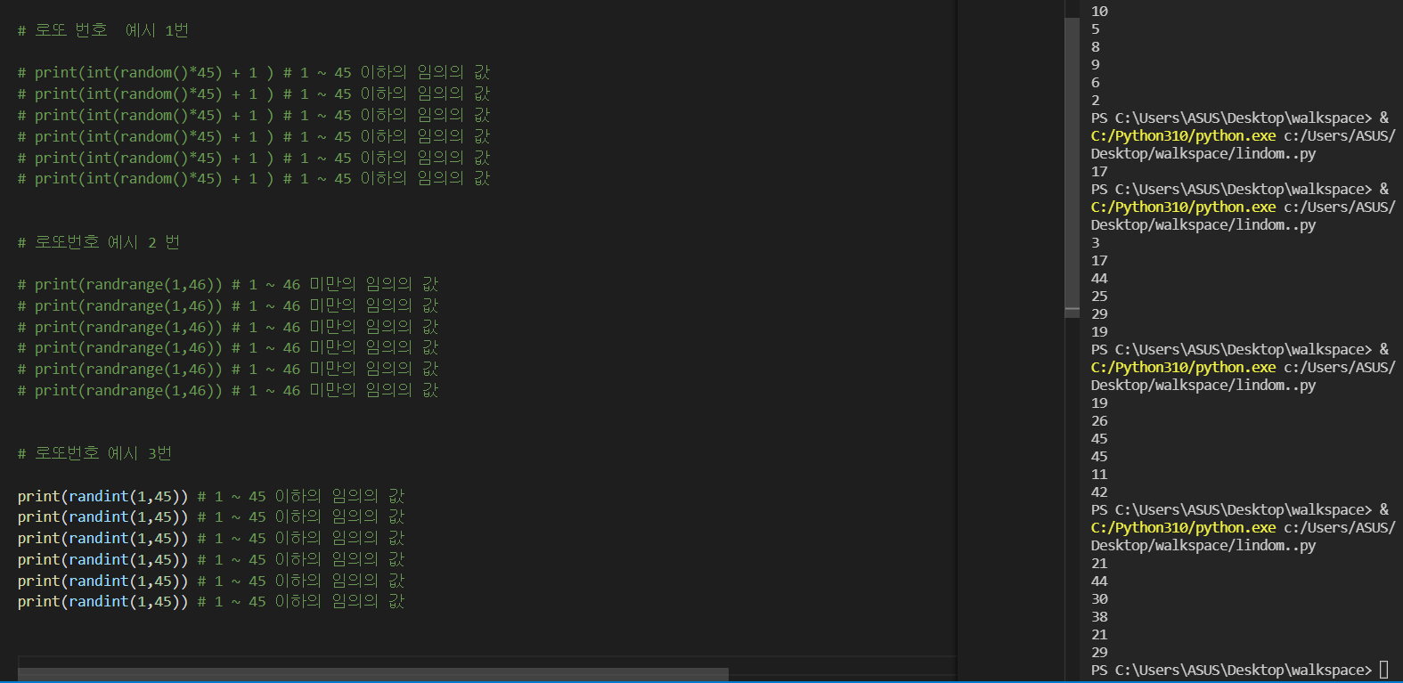 # print(int(random()*45) + 1 ) # 1 ~ 45 이하의 임의의 값