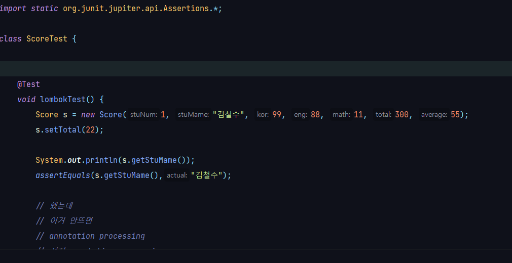setter getter , 생성자 등등 필요한것들을 만들어준다