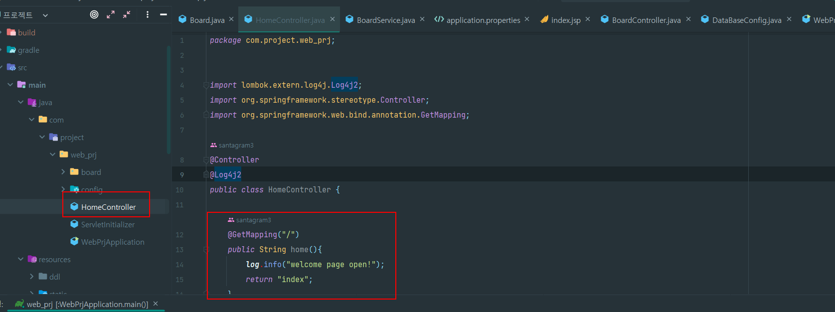 spring boot 게시판 만들기 3 . 포트 연결 , index 페이지 연결 , @Controller @log4j2 , [JDBC] 자바로 oracle 연결하기 본문