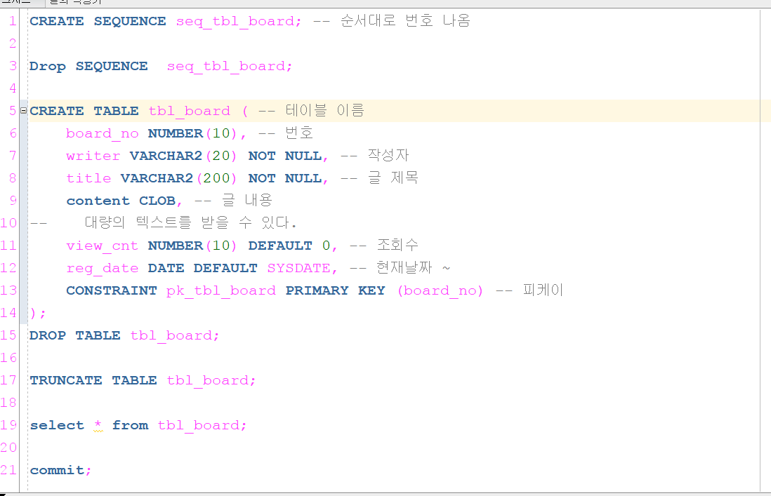 TRUNCATE TABLE tbl_board; tbl_board 안에 내용 싹 다 지워라 ~ 라는 뜻