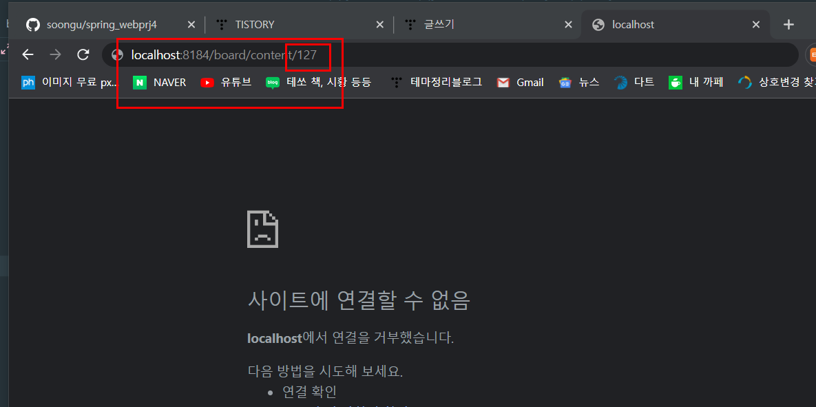 이런 빨간 박스 안 = 주소창에 나온 값이고