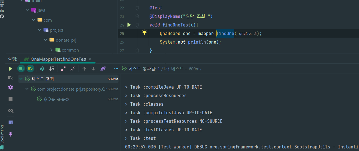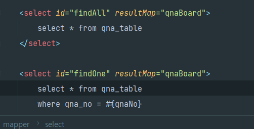 mybatis 에서 QnaMapper 에서 findOne 을 찾을수가 없다는 말이다 -