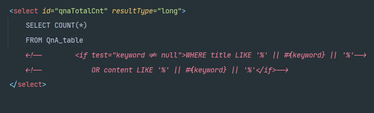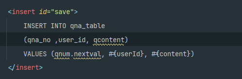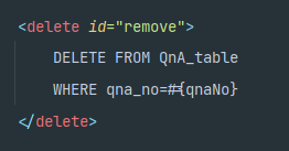 where qna_no(데이터베이스 컬럼 이름 ) = #{qnaNo}(자바 필드 이름 )