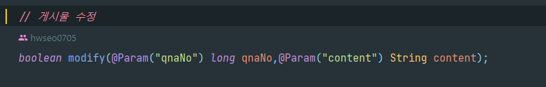 @Parm("qnaNo") 이걸 써줌으로써