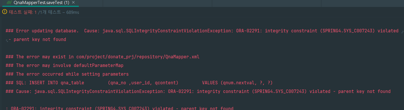 Error updating database. Cause: java.sql.SQLIntegrityConstraintViolationException: ORA-02291: integrity constraint (SPRING4.SYS_C007243) violated - parent key not found // 무결성 제약 조건 본문