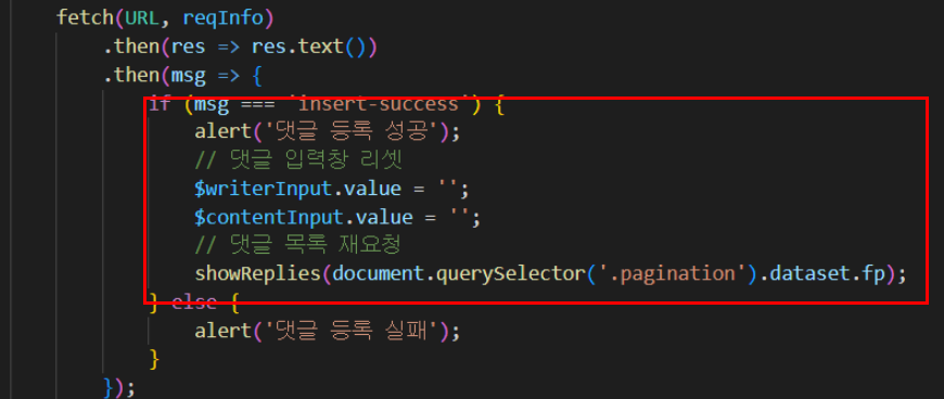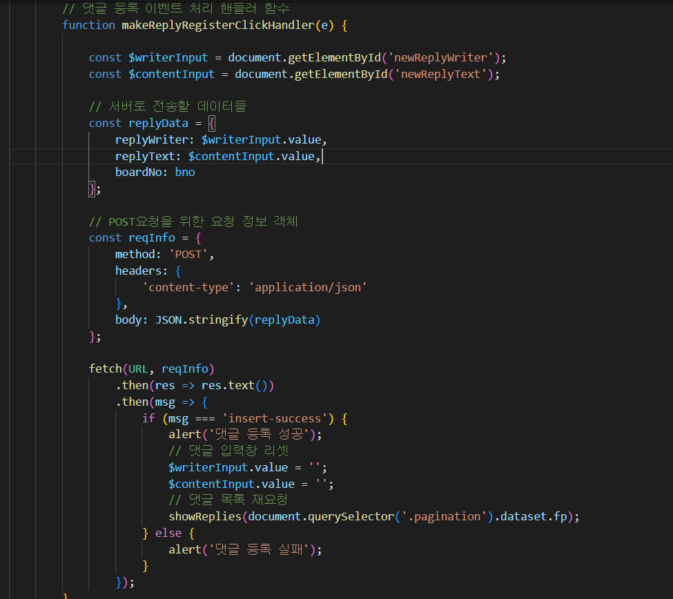 spring boot 비동기 댓글 만들기 2. 댓글 쓰기 ! fetch() method: 'POST' 자바스크립트 , 본문
