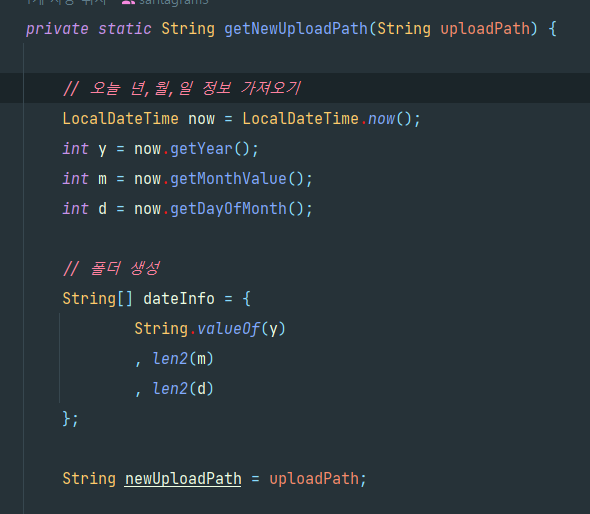 만약 newUploadPath 이런 경로를 가진 파일이 없을때 ! newUploadPath이름을 가진 파일을 만들라는 코드