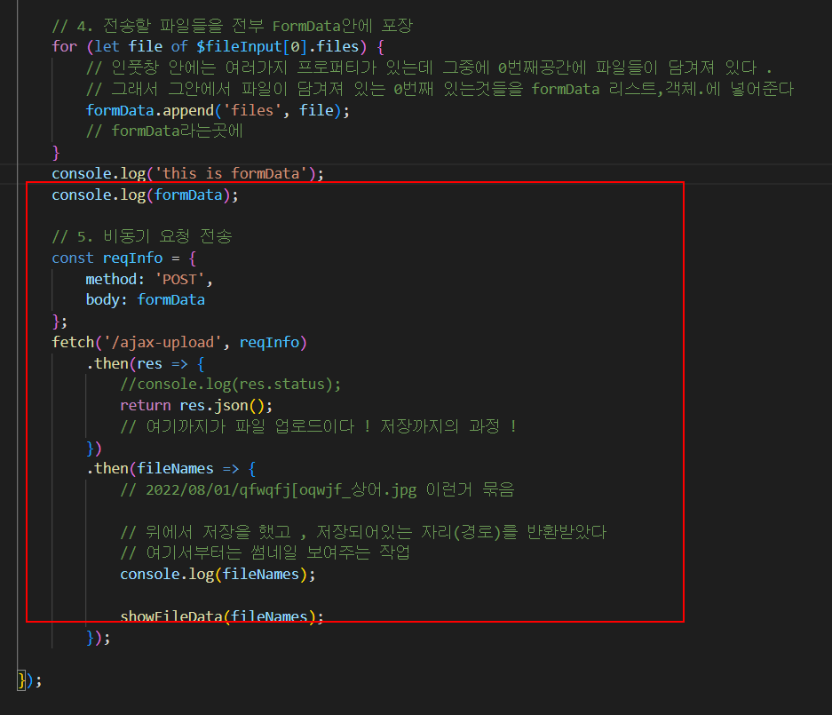 스프링부트 파일 업로드 ! 비동기 버전 1. 자바스크립트,HTML fetch().then() 과정 본문