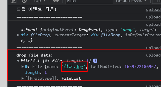 드롭 이벤트가 정상 작동 되는지 확인한다 !