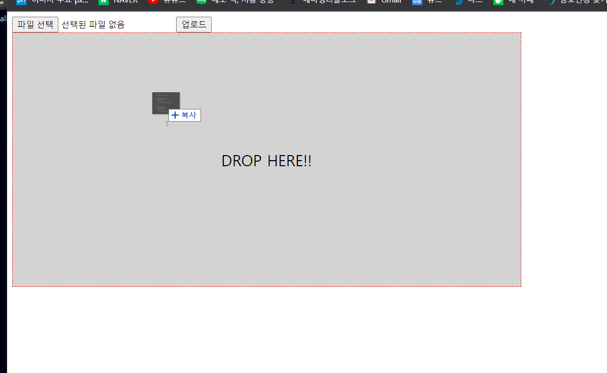 저기에 드래그엔 드롭으로 파일을 넣어서 저장해보려고 한다 !