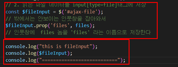 그래서 파일도 콘솔에 찍어보고 ,, 그걸 인풋창에 넣어준다 !!