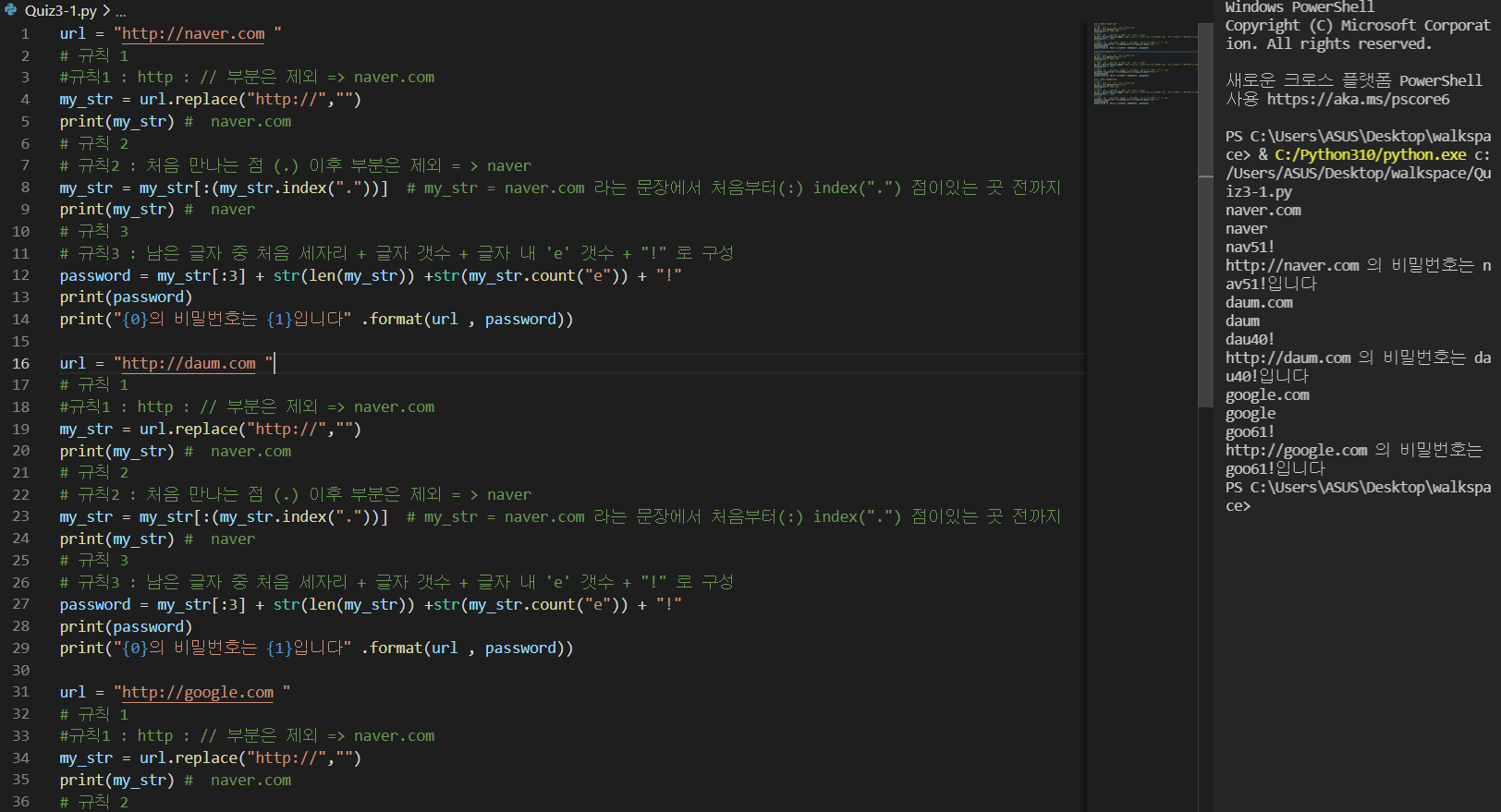 print("{0}의 비밀번호는 {1}입니다" .format(url , password))