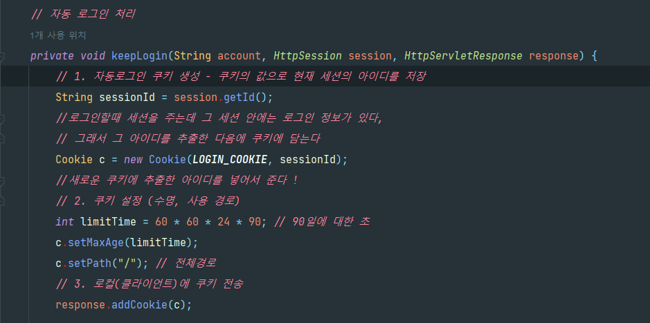 쿠키에 세션에 넣어뒀던 로그인 아이디를 넣어주고 ,