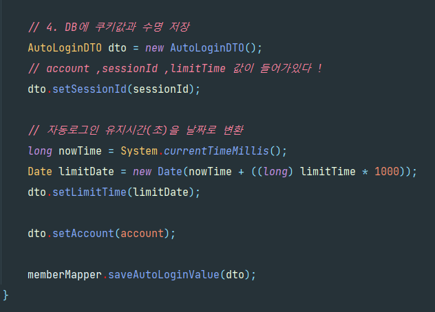 DB에 내가 줬던 쿠키의 값을 넣어주는데