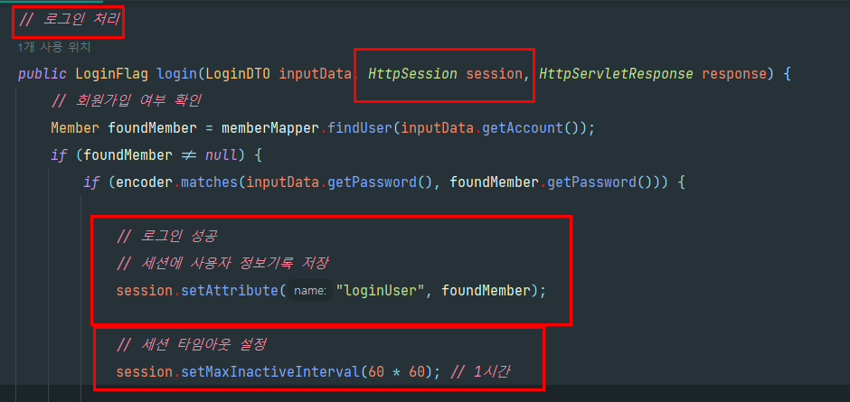 세션이라는 공간에 , 세팅하는데 "loginUser" 라는이름을 가진// 내가 찾은 맴버 foundMember 를 넣어준다 !