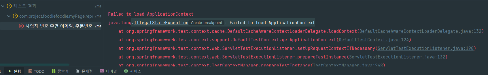 이런 에러가 났다 .. java.lang.IllegalStateException: Failed to load ApplicationContext