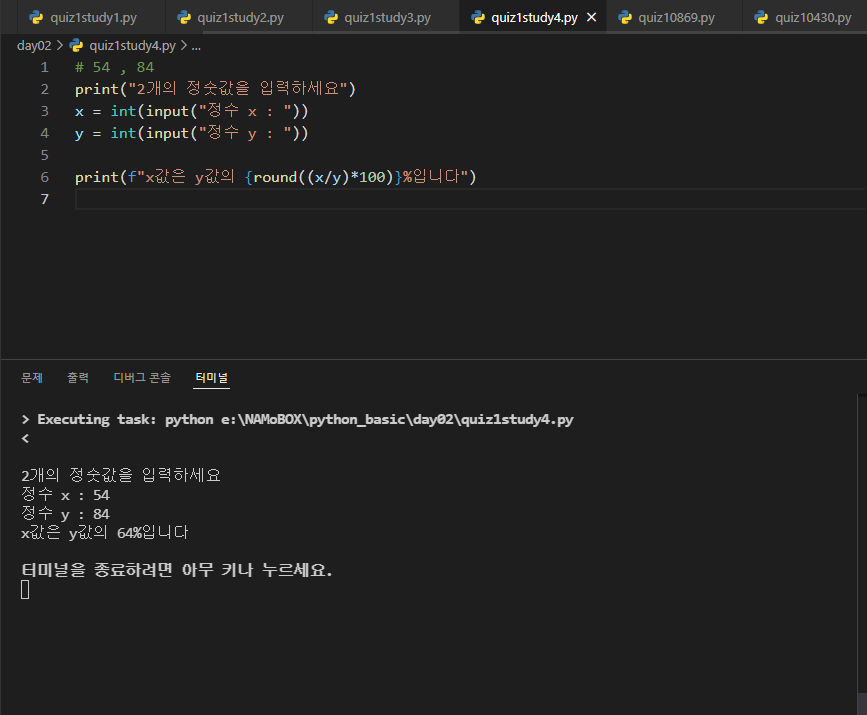 학원문제 4 / round() , print() , int(print()) / 나누기 /2022.03.30 (수) / python , 파이썬 본문