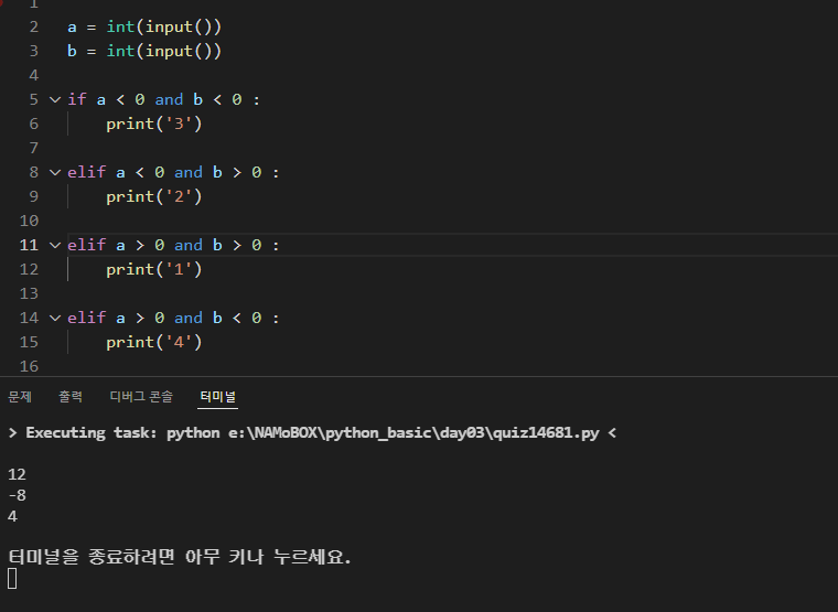 백준 코딩테스트 14681번 사분면 , Quadrant , 좌표 / int(input()) , input() , < , > , if , elif , 2022.04.04 (월) . python , 파이썬 /