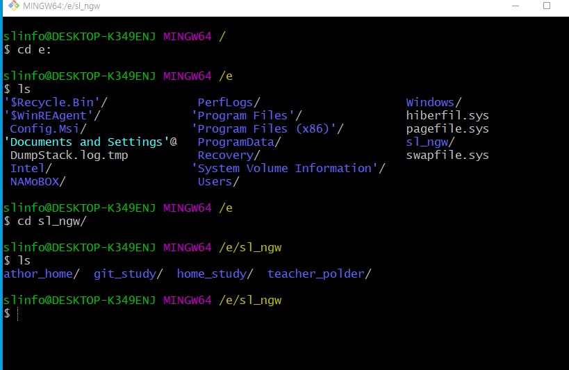 git bash 명령어 cd e: , ls / github , git /2022.04.04 (월) 본문