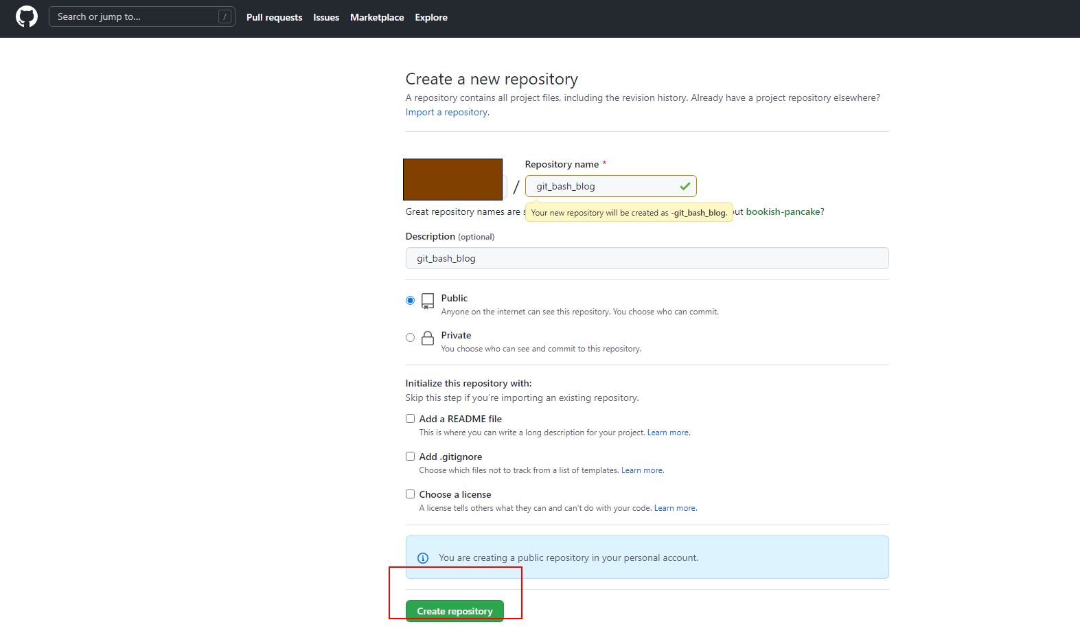 Create repository 클릭