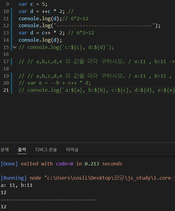 // var b = a++; // a 뒤에 ++ 이 있어서 후위연산자로 b = a 를 먼저 수행하고 , a ++ 을 수행