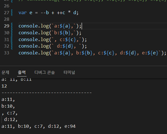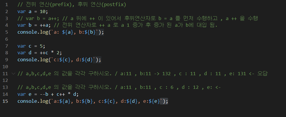 var b = ++a; // 전위 연산자로 ++ a 로 a 1 증가 후 증가 된 a가 b에 대입 됨.