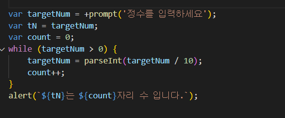 alert(`${tN}는 ${count}자리 수 입니다.`);