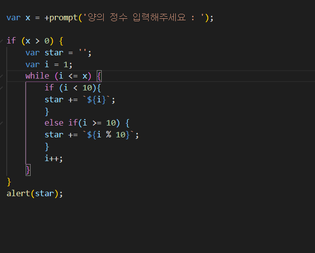 양의 정수를 입력하면 그만큼 숫자가 나오게 하는 식 / if ,while/자바스크립트 ,javascript 본문