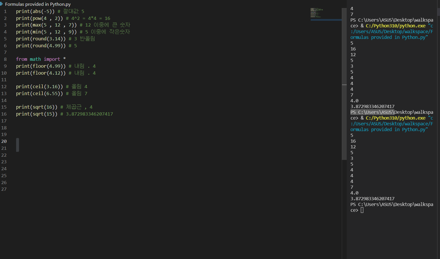 Formulas provided in Python 파이썬에서 제공하는 수식 본문