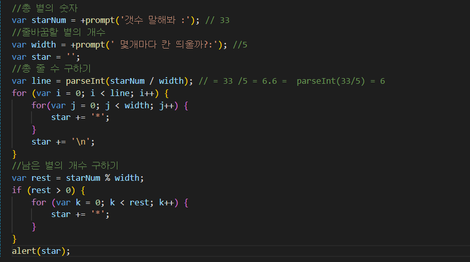 var starNum = +prompt('갯수 말해봐 :'); // 33
