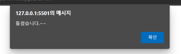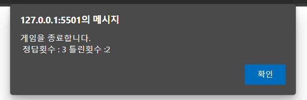 alert(`게임을 종료합니다. \n 정답횟수 : ${correct} 틀린횟수 :${wrong}`);