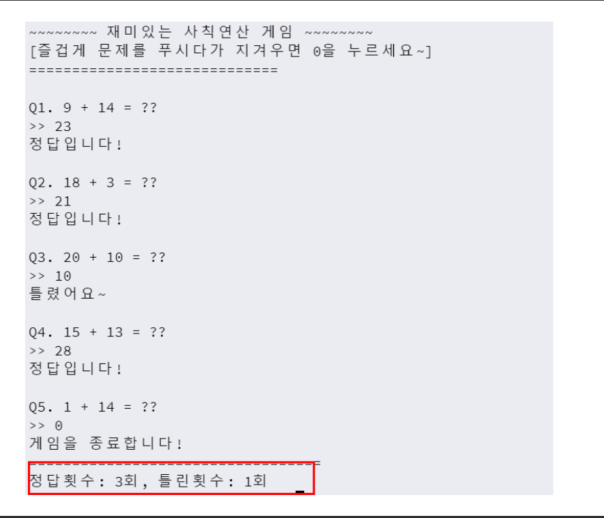 alert('~~~~~~ 재미있는 사칙연산 게임 ~~~~~`');