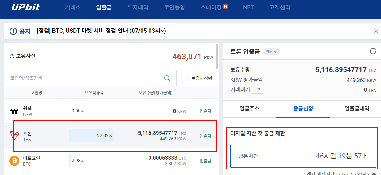 5. 출금신청.. 을 누르면 .. 46시간동안 거래 못한다고 하니까 기달려보자