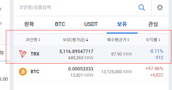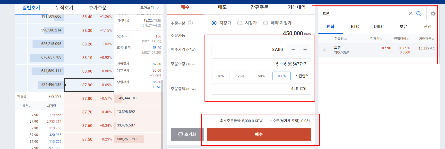 2. 업비트에서 리플, 이오스, 트론 이중에 하나를 골라서 매수를 한다