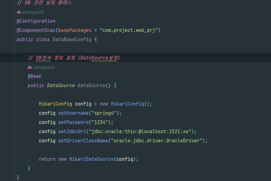 config 패키지 안에 / DataBaseConfig 라는 클래스를 만들어준다