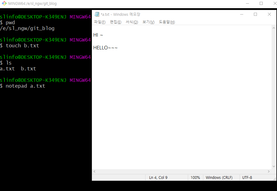 git bash , notepad a.txt , git diff , git log --oneline /2022.04.05 (화)