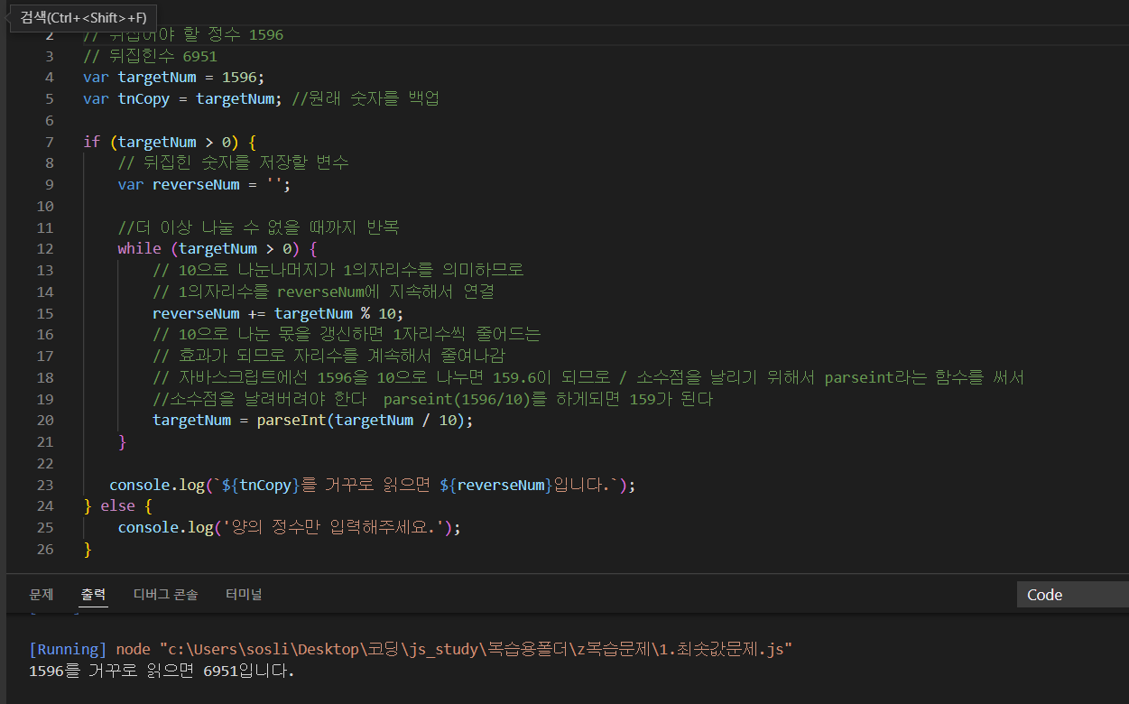 console.log(`${tnCopy}를 거꾸로 읽으면 ${reverseNum}입니다.`);